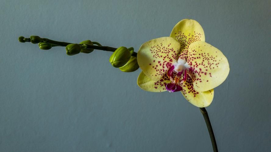 We inherited an orchid with the house. I was trying to decide if it was worth keeping when I noticed it had started a flower spike. Clever orchid.