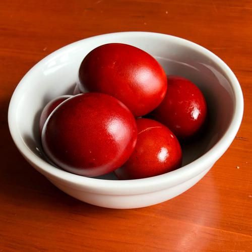 Pace eggs (hard boiled with onion skins) are one of my mother's Easter traditions. About once a decade, I remember to collect the onion peelings before Easter. This is that year.