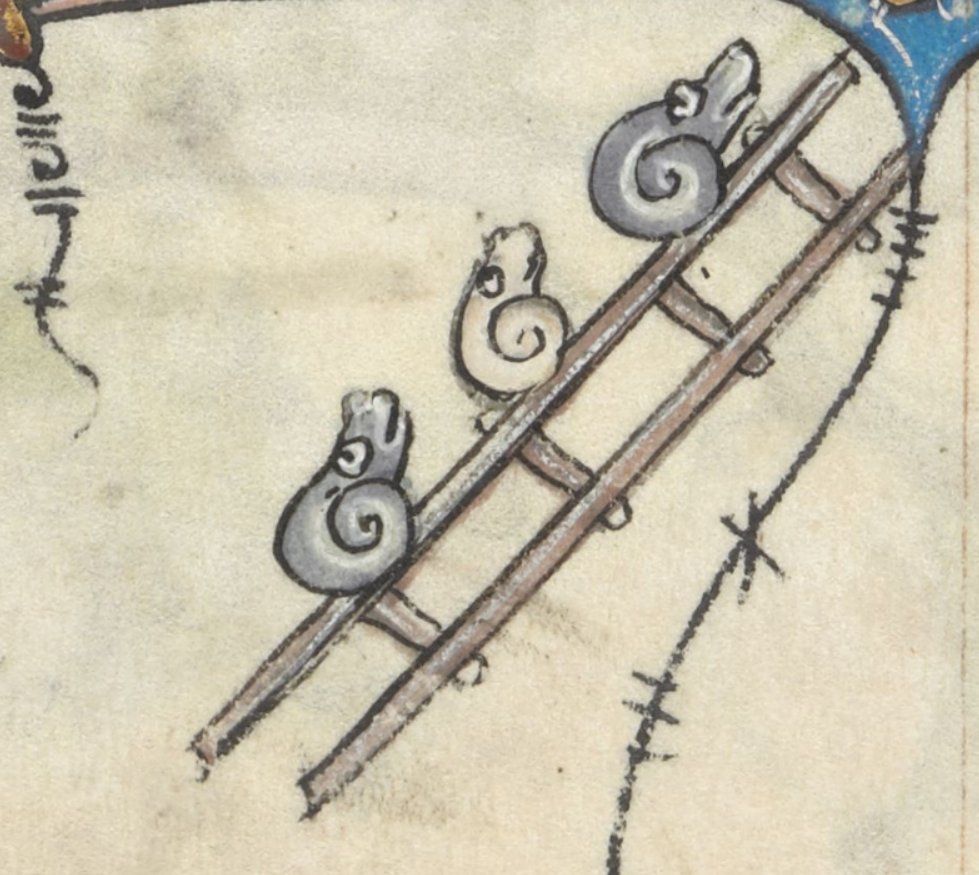 : snails going up a ladder, france, 15th century