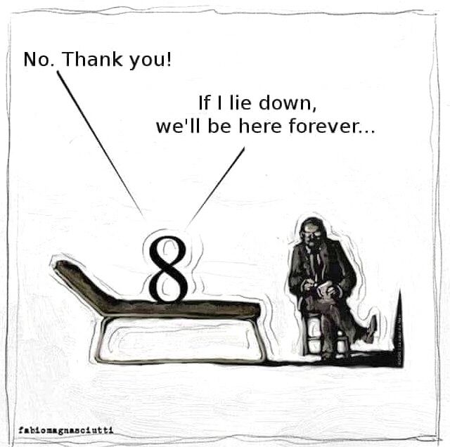 : This is a mathematics joke. The number 8 is talking with a psychotherapist.