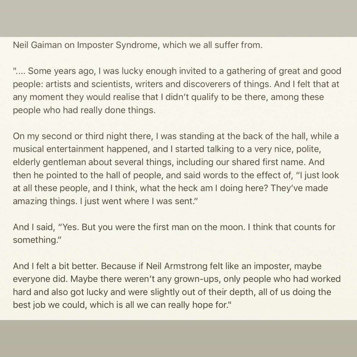 : Neil Gaiman on imposter syndrome.