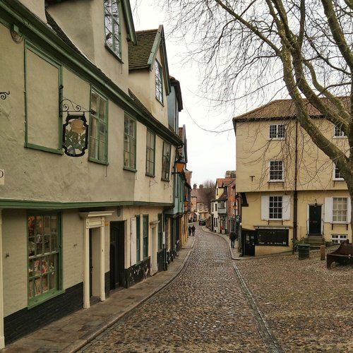Norwich is really very lovely. This is a view of the shops and buildings along the cobbled street of Elm Hill.